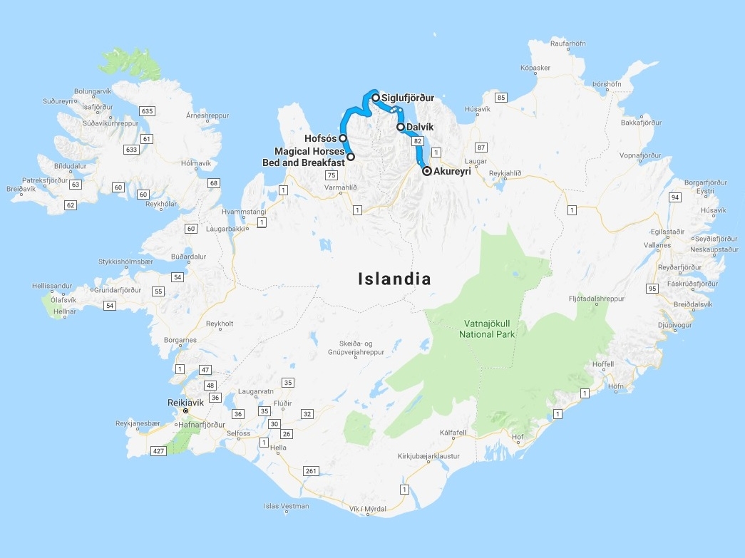 Todavía quedan 76 km hasta Akureyri. La mayor parte de los 16 km que separan Siglufjörður de Ólafsfjörður se recorren en túneles que atraviesan la montaña. Cuando salimos de nuevo a la luz el tiempo ha mejorado, entre otras cosas porque estamos a nivel del mar. Nos hubiera gustado parar en Dalvik y Laufás pero está oscureciendo ya, y es mejor seguir hasta Akureyri.