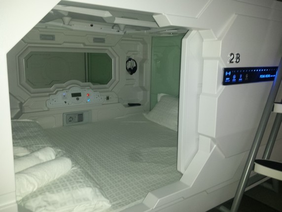 Hafnarstraeti Hostel, 8.900 ISK. En la calle del mismo nombre, céntrico a rabiar. Es un hotel tipo cápsula, como los que había en Japón, parecen sacadas de Star Wars. Creo que hay de dos tipos, individuales y dobles. La nuestra es doble, en su interior hay una cama doble, dos colchas, dos almohadas, un par de auriculares, dos toallas, una televisión, y un panel de control desde el que se controlan las luces, apertura de puerta, despertador y demás servicios que ofrece. Suficiente para pasar una noche. Más allá de la novedad, es un lugar tranquilo y muy limpio, los baños compartidos están impecables. Dispone de una agradable sala común con mesa de billar, juegos de mesa y un montón de espacio para sentarse. Cocina compartida y desayuno incluido.