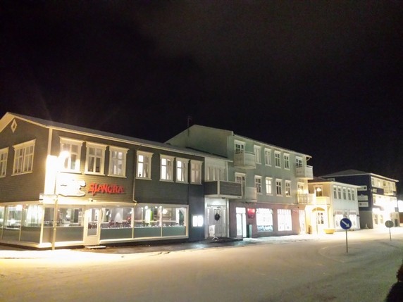 Strikið, cocina de autor, en la cuarta planta de un edificio frente al puerto. Ambiente relajado, buenas vistas y buena cocina. 1.200 ISK los entrantes, 4.000 ISK los platos principales, 1.000 ISK la cerveza o el vaso de vino.