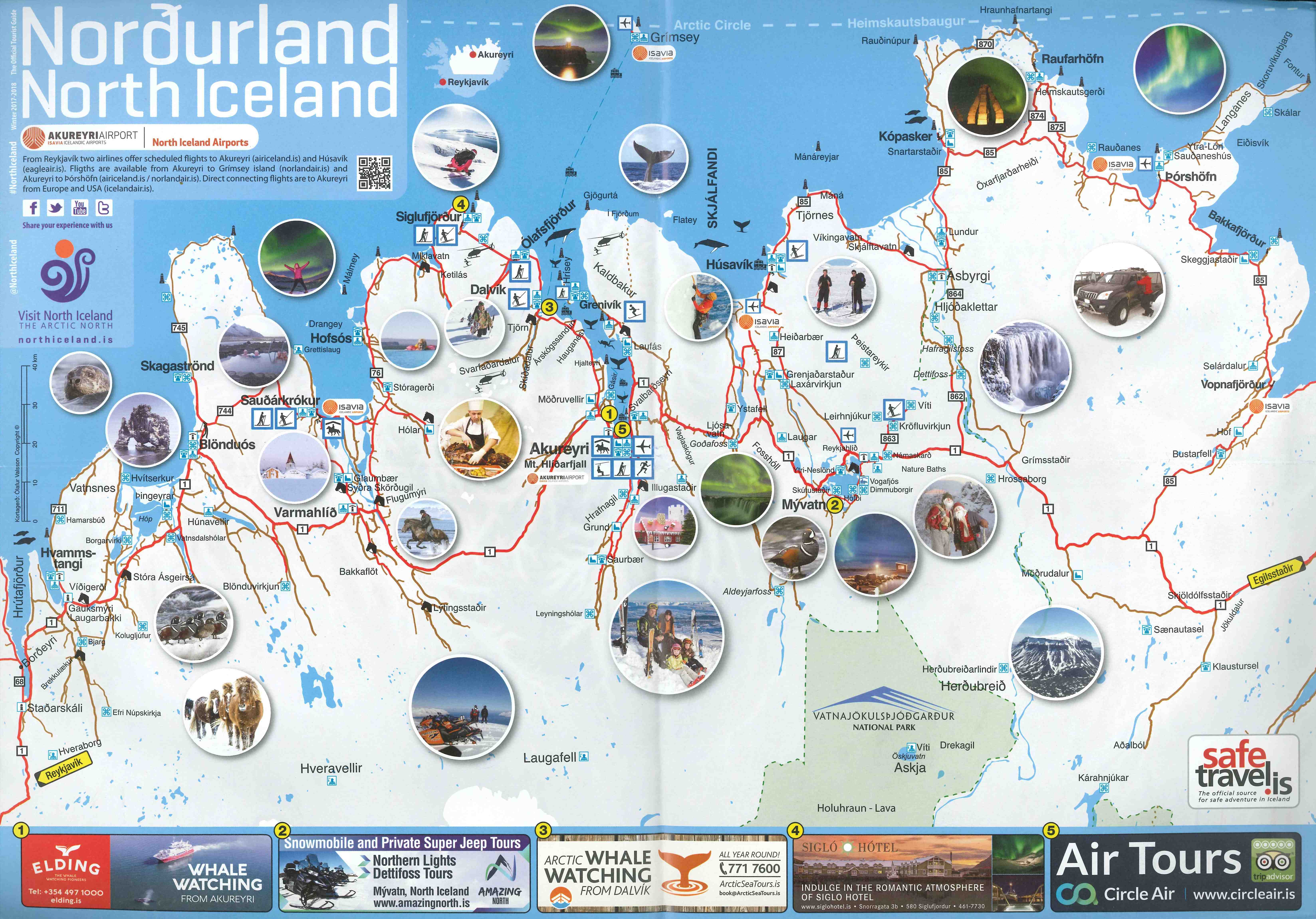 El hotel se encuentra en el cruce de Hafnarstræti con Kaupvangsstræti, puro centro de Aureyri. Aquí, además de media docena de albergues, hay una gran oferta de restauración para todos los gustos y bolsillos.