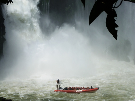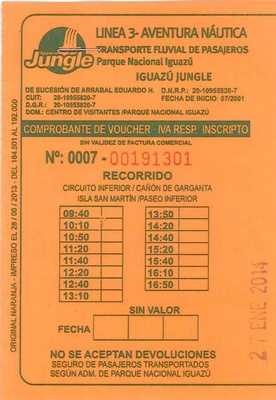 aventura náutica con Iguazú Jungle. El paseo es corto, apenas 12 ó 15 minutos, pero intenso. Bordeando la isla se acerca a la base de varios saltos, y la navegación a lo largo del cañón ofrece fantásticas vistas del lado brasileño y la Garganta del Diablo al fondo. Pero lo mejor viene al final, cuando la lancha se mete literalmente debajo del Salto de San Martín, el segundo en dimensión, y descubres porque a esta excursión le llaman "la ducha". Cegados por la emoción encargamos el video (200 AR$) que han grabado desde dentro de la embarcación, que resulta un poco frustrante la verdad, no lo recomiendo. El circuito inferior, a diferencia del superior y el que lleva a la Garganta del Diablo, tiene algunos tramos de escaleras con desniveles importantes que pueden dificultar el acceso a la gente con movilidad reducida. Por otro lado, a diferencia del lado brasileño, aquí solo te mojas un poco en la Garganta del Diablo y por supuesto en la excursión náutica. No hace falta comprar impermeable.