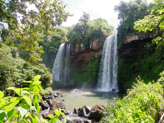 isla San Martín. Un servicio gratuito de barcas a motor nos lleva en cinco minutos hasta una playa de arenas blancas. Desde allí un sendero excavado en la roca sube hasta diversos miradores con vistas la Garganta del Diablo, la Ventana en la Roca y el Balcón del Salto San Martín. Aprovechamos para comer rodeados de intimidantes aves y lagartos overos.