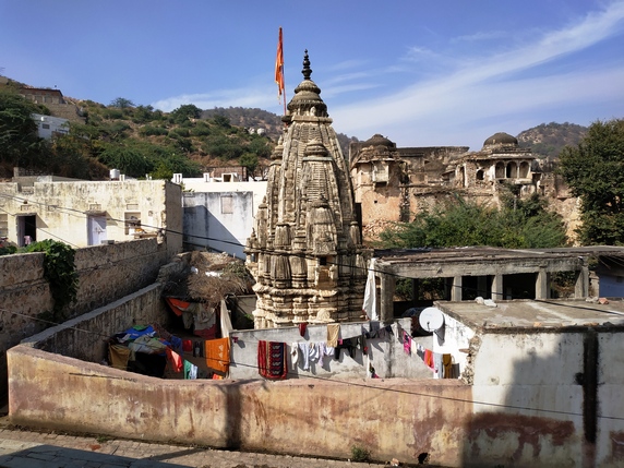 Templo Bihariji construido a principios del siglo XVII durante el reinado de Mirza Raja Jai Singh I, famoso por sus contribuciones arquitectónicas a la ciudad de Amber. El lugar es un claro representante de la arquitectura de la época, cuando albergaba iconos de Lakshmi Narayan, una de las manifestaciones de Vishnu, aunque actualmente el templo se encuentra en desuso.