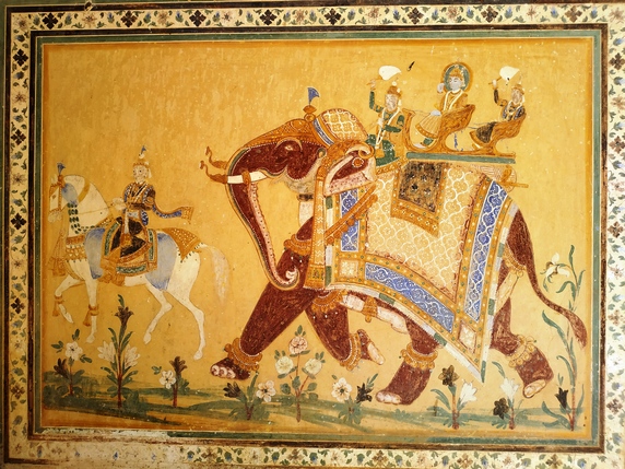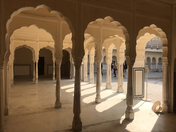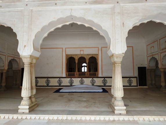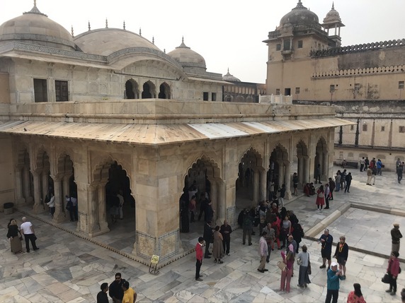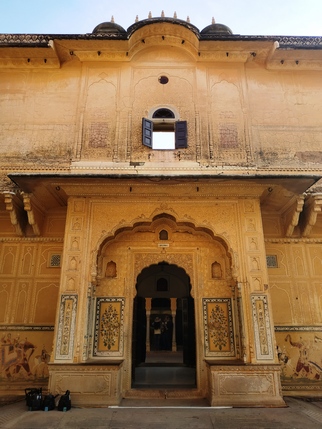 acceso 500 INR) y contratar un guía (300 INR), si lo consideráis necesario. Es probablemente la fortaleza más importante de Rajasthan, la visita incluye patios, mezquitas, salas de audiencias y consejo, las habitaciones privadas del marajá, estancias decoradas con fantásticos murales, ventanas de celosía para que las mujeres pudieran mirar sin ser vistas, la espectacular sala Shish Mahal recubierta de espejos y vidrieras de colores, el harén, varios jardines, puertas de marfil, paredes de mármol... un repaso completo a la vida palaciega de los marajás que nos llevará no menos de dos horas.