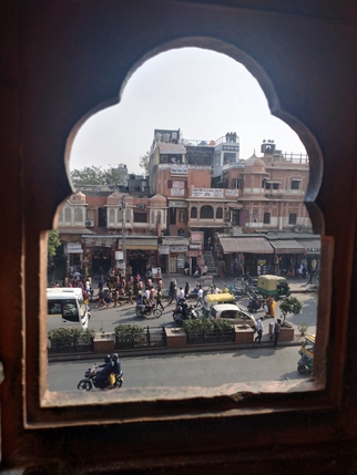 Jaipur es una ciudad relativamente tranquila en comparación con las que hemos visitado hasta ahora, los niveles de ruido son elevados como en toda India, pero no constantes, el descanso es de apenas quince o veinte segundos, pero existe, y el tráfico, beneficiado por sus amplias calles y avenidas es más fluido, dentro del caos indio. Aunque al ser las calles tan anchas cruzarlas es una aventura. Aquí hemos hecho cortos, nos habría hecho falta un día más para visitarla con calma y pasear por su Central Park.