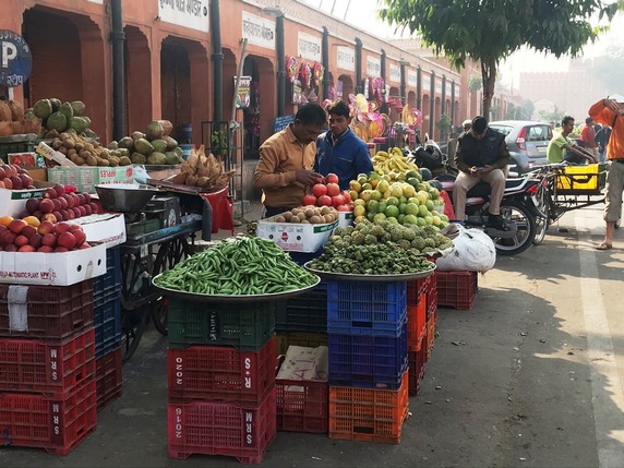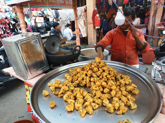 Tras salir del palacio, paseando por el bazar Tripola, se ve Iswari Minar Swarga Sal, un minarete de 35 mts de altura que domina toda la ciudad vieja. El camino sigue por varios bazares hasta llegar de nuevo a la New Gate. Aunque cada uno está especializado en algo, en general son una sucesión infinita de tiendas, pegadas una tras otra, organizadas en especialidades y utilidades: especias, telas y saris, ropa, frutas y verduras, utensilios de hogar, trabajo en mármol, esculturas...