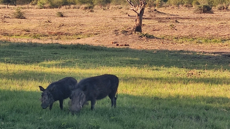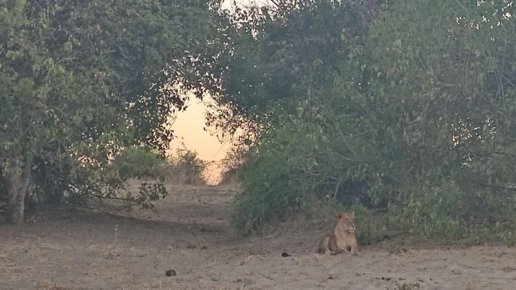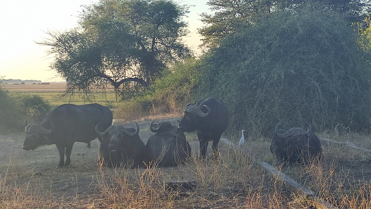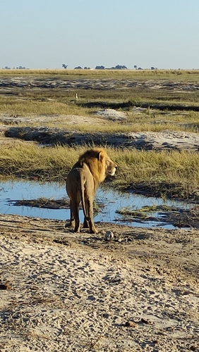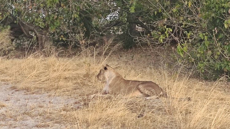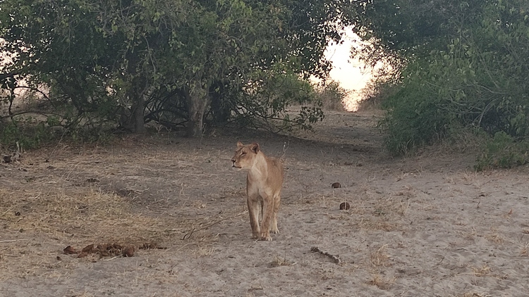 game drives, como siempre, es una cuestión de suerte, pero al atardecer acercarse al río y esperar a que los animales vengan a beber, es un triunfo casi seguro. Dos de los tres días que vinimos por la tarde vimos leones, el primer día cuatro bebiendo y dos haciendo la siesta; el segundo día, un grupo de nueve, dos de ellos machos con frondosas melenas, se estaban comiendo un búfalo.