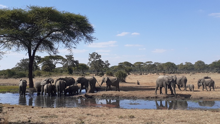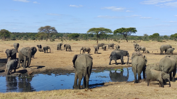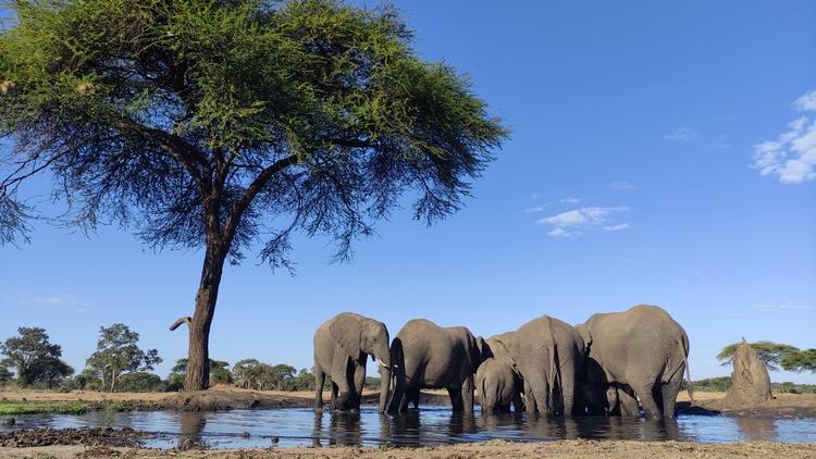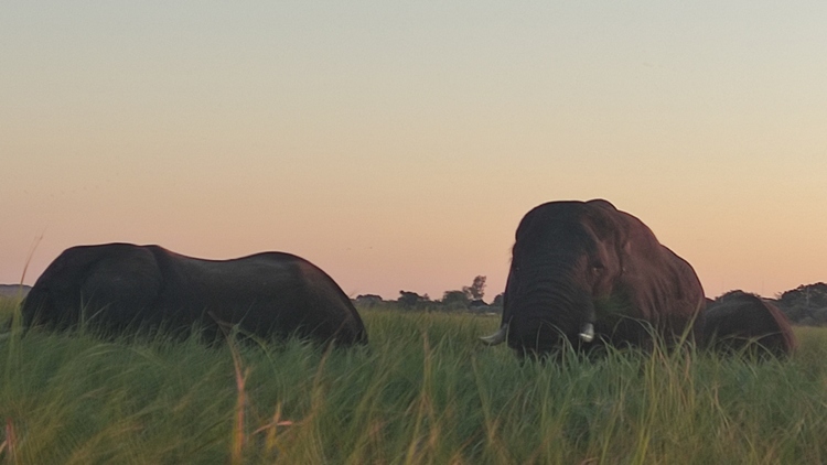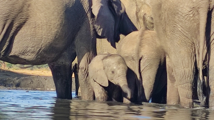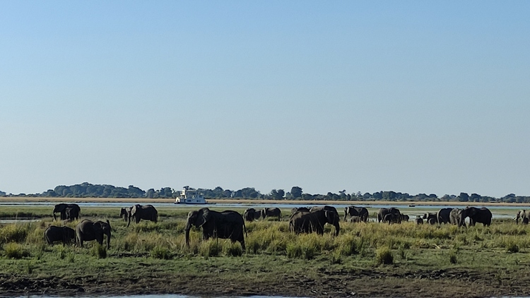 Chobe NP. Es mundialmente famoso por su importante población de elefantes, se calcula que entre 70.000 y 120.000, uno de cada tres elefantes en el mundo, se encuentra aquí. Las manadas de 50 ejemplares están a la orden del día. El resto de