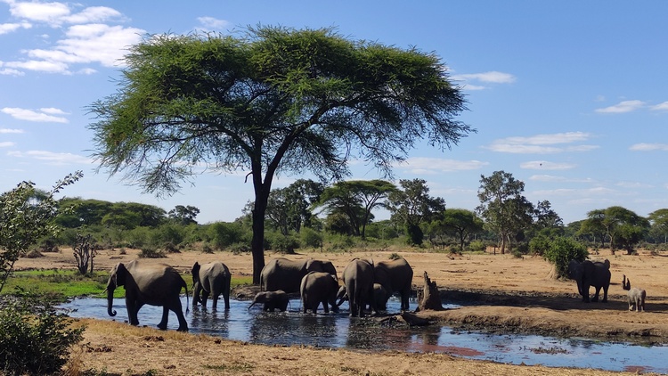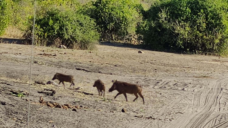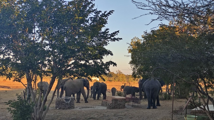 Senyati Safari Camp, a 10 km de Kasane. Alrededor de una charca, donde acuden a beber elefantes, impalas, babuinos, chacales, hienas y toda bestia que se encuentre por la zona, se distribuyen 8 chalets y 20 plazas de camping. Cada área de acampada tiene su propia cabaña que incluye lavabo, ducha con agua caliente alimentada por leña, porche con corriente eléctrica, lavadero, repisa para cocinar, colgadores de ropa, incluso una cuerda para tender la ropa. A pocos metros todas tienen una