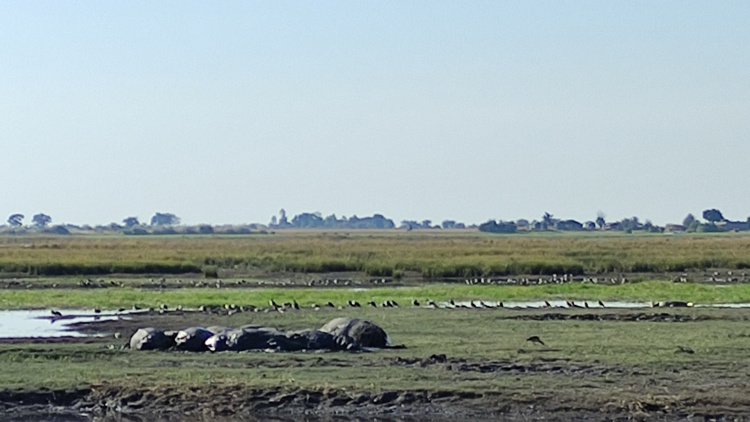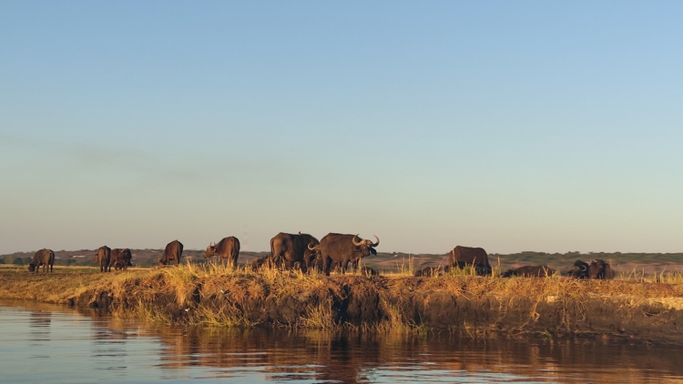 En su camino desde Angola hacia el río Zambeze, donde desemboca, el río Chobe crea en Botswana unas zonas inundadas y pantanosas, rodeadas de sabana, bosques de mopanes y desierto, de mas de 10.000 km
