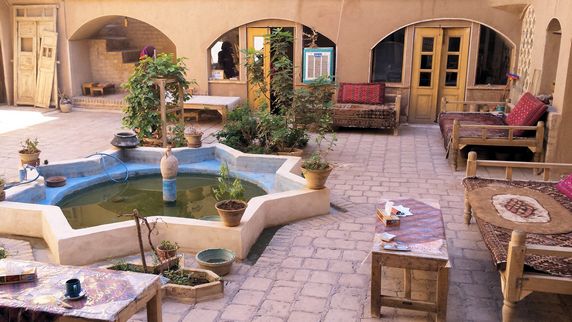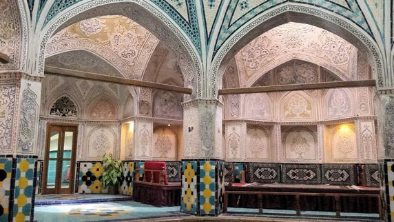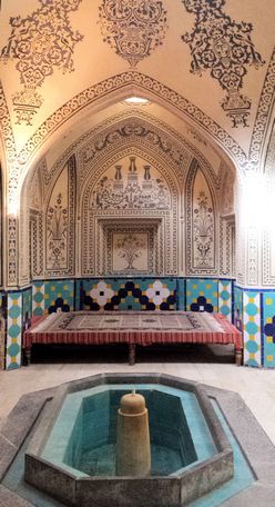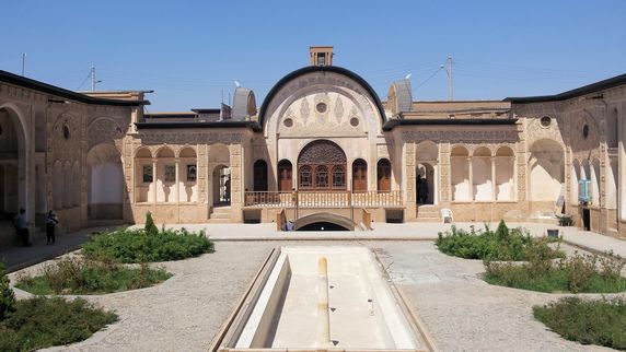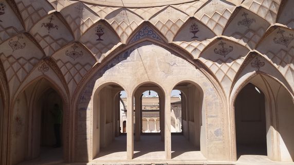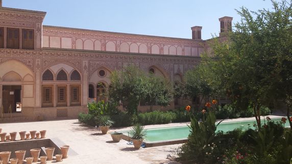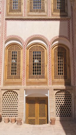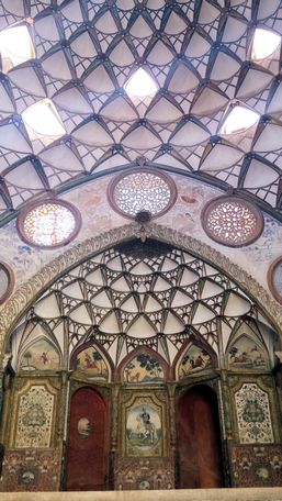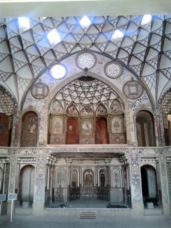Khan-e Ameriha (50.000 IRR, 1,25€) Construida a finales del siglo XVIII, abarca cuatro mansiones, para los diferentes miembros de la familia, unidos por siete patios, ocupando todo más de 9.000 m