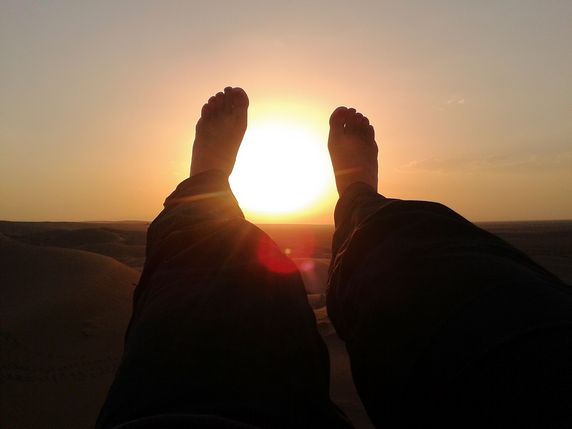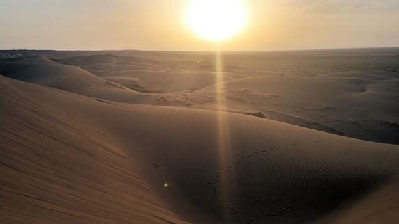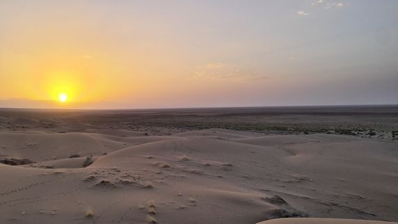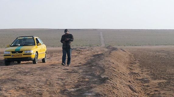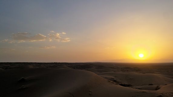 2 en la meseta iraní. Con el coche nos acercamos a una zona de dunas en la entrada del desierto, para ver la puesta de sol sentados en la cima de una duna. Es algo que ya hemos hecho en varios desiertos, en diferentes países, pero es un espectáculo fascinante y adictivo al que no nos resistimos.