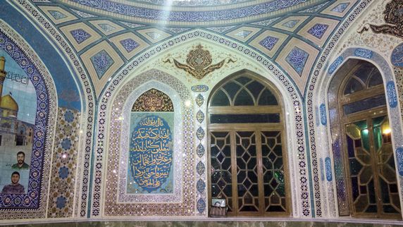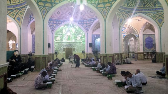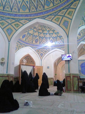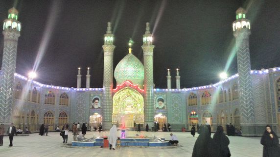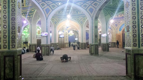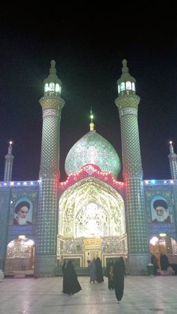 Santuario de Imamzadeh Helal Ali, un mausoleo donde está enterrado Hilal Ibn Ali, hermano del Imam Hussein y nieto de Mahoma. En el exterior de la mezquita hay tumbas de mártires muertos en la guerra Irán-Irak. Un enorme patio rodea un estanque central con fuentes, y al fondo está el santuario, cubierto del embaldosado más complejo y colorido, de todos los que hemos visto en Irán. Es obligatorio el chador para las mujeres. El acceso al mausoleo, y una vez en su interior, hay zonas separadas para hombres y mujeres.