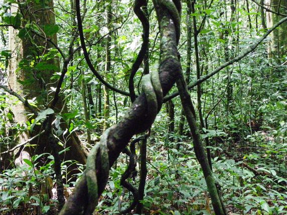mas y mas en la selva. Hay poca luz, algunos árboles alcanzan