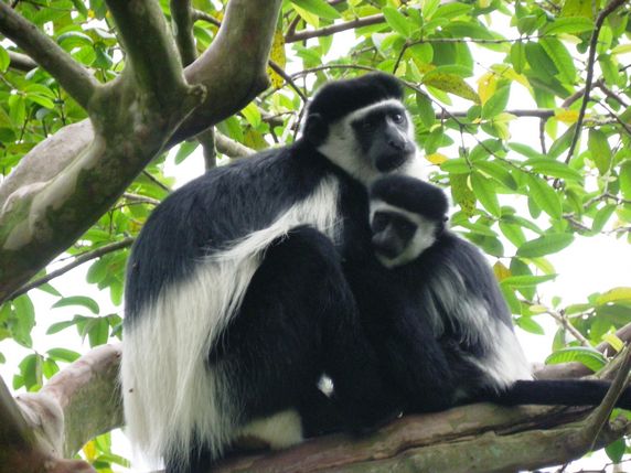 de bosque donde pueden verse algunos colobos blancos y negros de cola