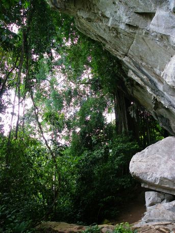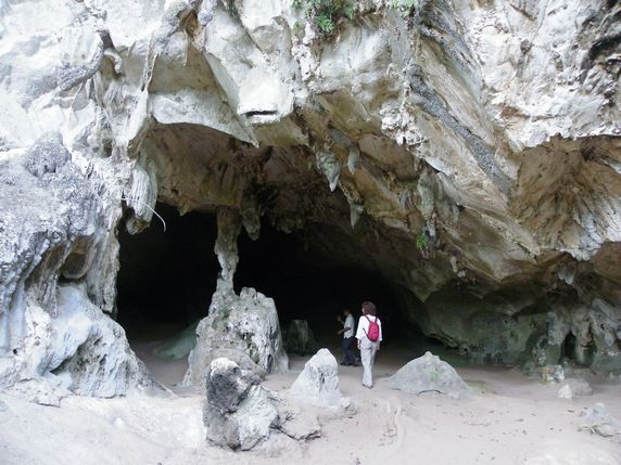 Gua Kechil, una cueva sin pena ni gloria a pesar de su gran bóveda, y algunas estalactitas y estalagmitas. Su importancia reside en el hallazgo en 1962-63 de indicios de ocupación humana, como piedras talladas y herramientas simples, que parecen indicar una transición de la caza y la recolección a una economía basada en la "floreciente agricultura neolítica".
