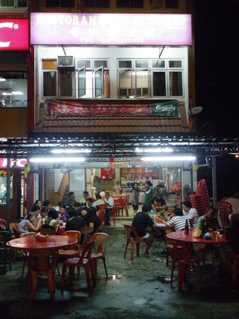 Rest. Fung Seng Lao. EXCELENTE restaurante chino junto al KFC, y lo digo tanto por lo que cenamos nosotros, arroz con bolas de gambas y una cerveza (21rm), como por los manjares que devoran las familias chinas que abarrotan el local, y que nosotros no supimos escoger por no hablar chino. Repetimos la noche siguiente. Uno de sus platos mas apreciados es el