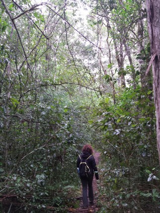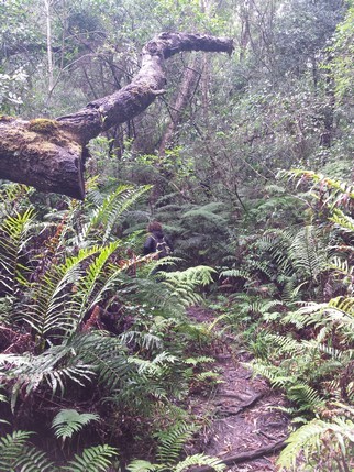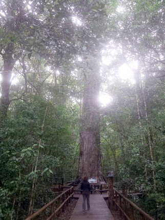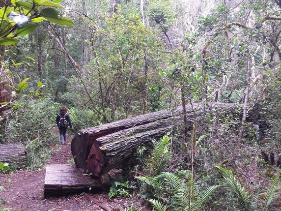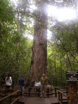 red elephant (7 km), empieza con fuerte pendiente descendente, que siendo un camino circular evidentemente acabas recuperando. Aunque en algunos puntos el sendero es estrecho y frondoso, es un paseo agradable donde no nos cruzamos con nadie en las 2h30 que tardamos en recorrerlo. Atravesamos algunos riachuelos, y vimos dos viejos arboles gigantes de más de 600 años que median 26 y 22 mts de altura.