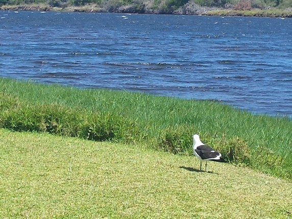 Después de comer nos acercamos a Buffalo Bay, un pequeño pueblo en un extremo del estuario, con agua a ambos lados. Tiene maravillosas playas de todos los tipos y tamaños, rocas, arena fina, dunas y bosques que llegan hasta la misma arena. En el lado occidental, la mayoría de playas son de roca y el mar parece más bravo, estando prohibido el baño; en el otro lado hay una amplia playa con dunas hasta la orilla, la arena está llena de gente tomando el sol y el agua de aficionados practicando surf.