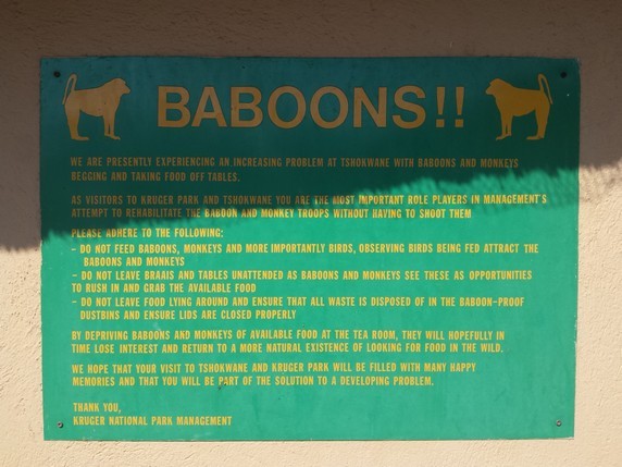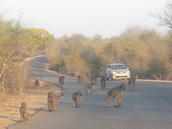Una carretera asfaltada recorre Kruger de norte a sur, con diferentes ramificaciones que unen dicha carretera con las puertas de entrada y los campamentos. Es una vía de un solo carril por banda y no se pueden superar los 50 km/h. De esta carretera salen también decenas de caminos de tierra, en muy buen estado, donde no se pueden superar los 40 km/h. Incluso durante la época que nosotros estuvimos, principios de septiembre, cuando estaba puesto el cartel de fully booked, el transito era fluido y escaso. Hay que conducir con cuidado y no bajar nunca del vehículo, ya que el cruce de animales de todo tipo es constante.