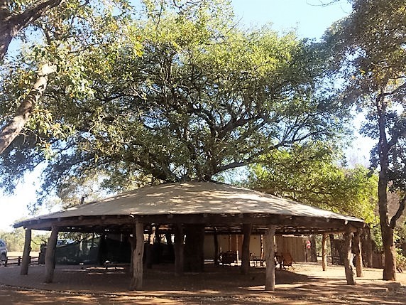 Lo ideal es dormir dentro del parque, para optimizar tiempo y kilómetros. El parque dispone de unos 35 campamentos que ofrecen diferentes opciones de alojamiento, restauración, supermercados, tiendas, y otras actividades y servicios. Durante las siete noches y casi más de 1000 km recorridos dentro del parque visitamos varios campamentos, durmiendo en los campings de Satara (4 noches) y Lower Sabie (3 noches). Aunque no son exactamente iguales, la plaza de acampada es un área de unos 25-35 m2 delimitada en el suelo por baldosines, donde entran una tienda y un coche holgadamente. Toda parcela tiene su barbacoa individual. Entre los servicios comunes hay lavabos, duchas con agua caliente, fogones de cocina, una zona para lavar platos y demás cacharros, surtidores de agua hirviendo para té/café o sopa, así como lavadora y secadora (20 rands servicio completo). El camping no dispone de wifi, de hecho la única disponible en todo el parque está en el restaurante de Skukuza. Hay que reconocer que la relación calidad precio es inmejorable, por 285 rands tan solo faltan bancos y una mesa.