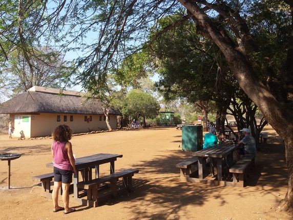 picnic areas, son pequeños campamentos vallados para protegernos de grandes animales, en los que se encuentra algún trabajador del parque, y donde hay zonas habilitadas con sillas y mesas para comer, lavabos limpios con papel, surtidores de agua hirviendo para preparar té o café, fregaderos donde limpiar los platos,