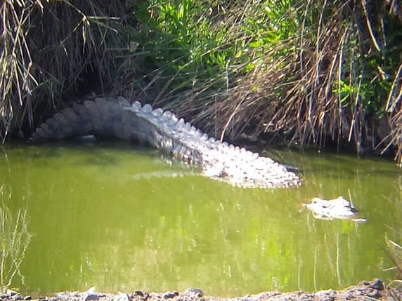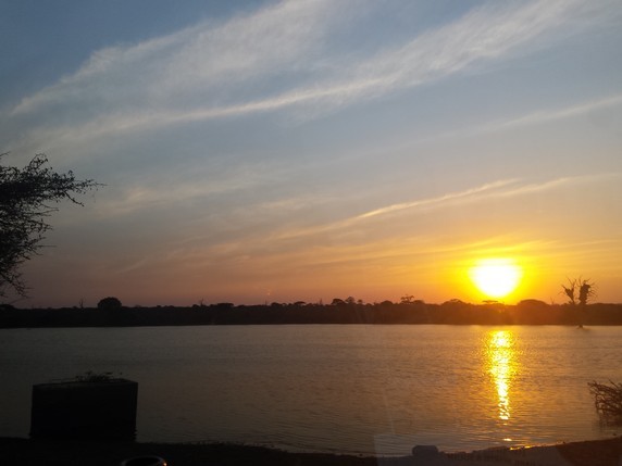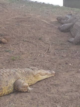 Itinerario. A pocos metros del campamento vemos un leopardo moviéndose en la orilla del río, bajo los árboles, a unos 50 mts de distancia. Poco después un león pasea tranquilamente por la carretera durante unos diez minutos, sin importarle los cuatro o cinco coches que le siguen. Aparecen los primeros rinocerontes: dos pastando muy cerca, tres bajo las sombras de un árbol a unos 25 metros, uno solitario muy cerca, y cuatro o cinco más a lo largo del día. El resto son jirafas, hipopótamos, cocodrilos del Nilo, elefantes de lejos en algunas charcas, búfalos. Junto a Lower Sabie hay una charca llamada Sunset, donde todos los días iremos a ver atardecer antes de entrar en el campamento. El nombre no es casual.