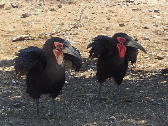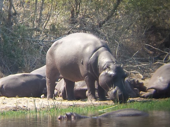 southern ground hornbill), hipopótamos a lo lejos (en Hippo Pools) y bastantes facóqueros.