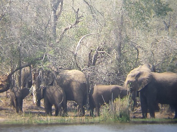wifi. A pesar de que la carretera que une estos dos campamentos es la zona del parque con mayor densidad de leones, hoy no vemos ninguno, pero si bastantes elefantes, nyaras, kudús, babuinos, jirafas, cercopitecos y un leopardo que acaba de cazar un impala y lo ha colgado de un árbol. Desde uno de los miradores sobre el río Sabie que hay nuestra ruta, vemos grandes manadas de elefantes e hipopótamos, y una pareja de galápagos de agua dulce.