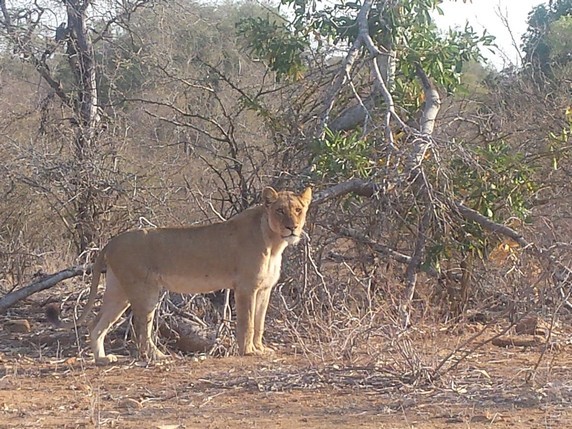 Itinerario. Primer día que salimos a las 06h. La primera hora ha sido de una sequía absoluta, apenas vemos algunos antílopes. Luego nuestra suerte ha cambiado de repente, un león se nos cruza frente al coche. Poco después vemos otro león solitario, y luego dos machos con seis hembras o leones más jóvenes. A esto hay que añadir durante el resto del día: búfalos, cebras, antílopes de todo tipo, jirafas, elefantes, hipopótamos. Visitamos el