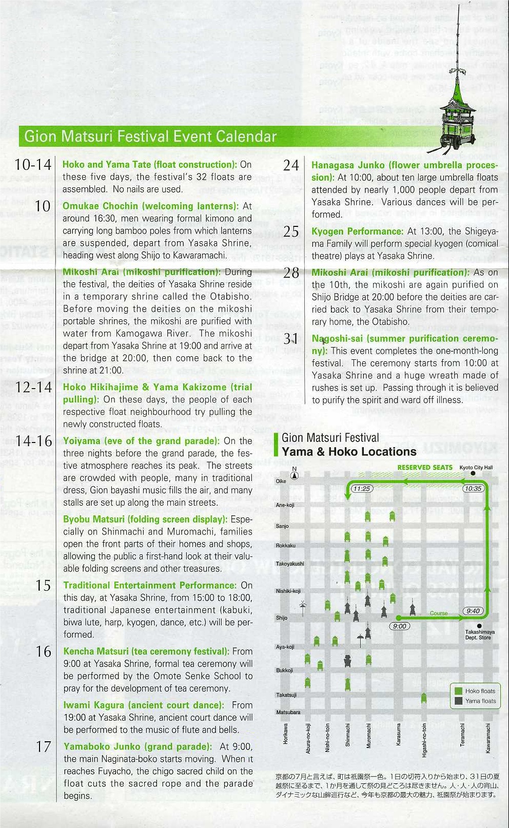 Calendario de eventos Gion Matsuri, 10-31 julio