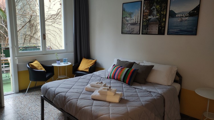 Ostello Bello Lake Como. Albergue con buen ambiente, buenos servicios y buena ubicación, a 100 mts del estadio de fútbol y las orillas del lago, con bastante espacio para aparcar en la zona. Desayuno incluido. Habitación con baño privado y vistas a un patio interior ajardinado donde no se oye ni una mosca. Dispone de bar restaurante, zona de relax, cocina plenamente equipada y parrillas.
