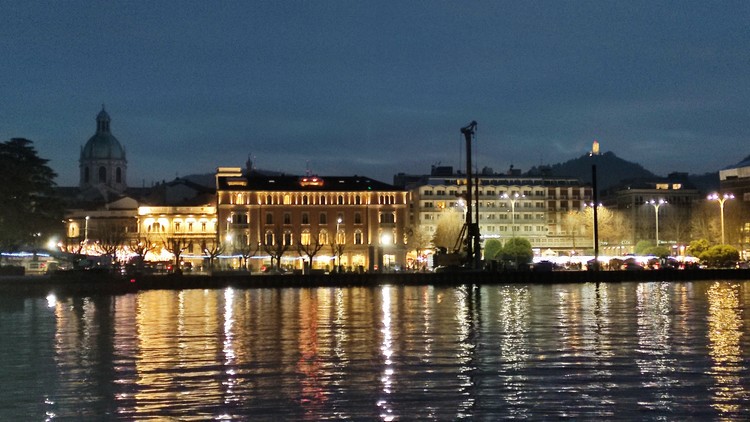 Como, fundada por los romanos en el año 196 aC, es la ciudad más importante del lago. Conserva parte de su muralla medieval, y la basílica del Duomo, construida entre los siglos XIV y XVIII. Desde la plaza Gasperi sube un funicular hasta el pueblecito de Brunate, desde donde se tienen unas vistas maravillosas del lago y el pueblo, En la Piazza Gavour durante las fiestas de Navidad se monta un entretenido mercadillo.