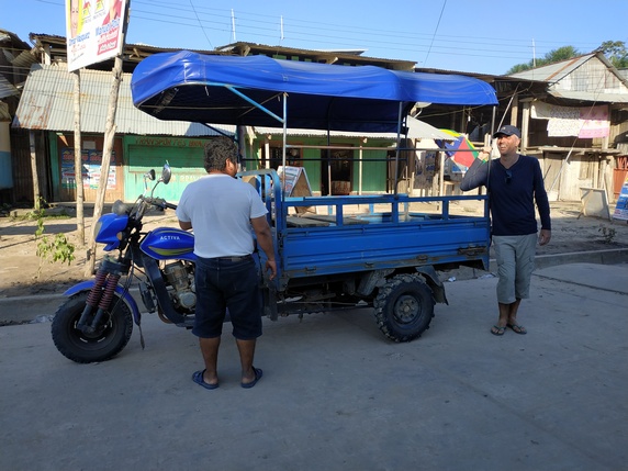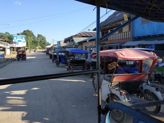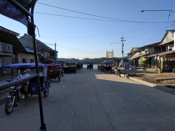 Un motocarro nos lleva al puerto por dos soles. La lancha rápida sale a las 5h30 de Lagunas y llega a Yurimaguas a las 13h. No hemos cogido Huallaga Vip, porque pasaba demasiado tarde, y habríamos perdido un día más. En su lugar compramos billete en las lanchas rápidas de