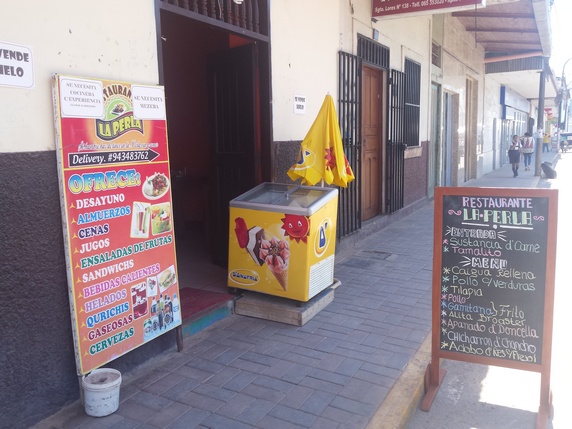 La Perla. Menú desde 7 soles, sopa del día y medio tamal como entrantes, platos principales pimiento relleno y chicharrón de cerdo, y como siempre chicha incluida, 15 soles.