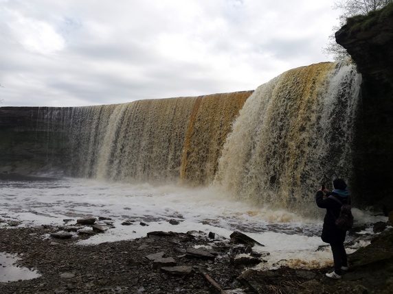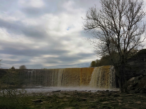 Jagala se genera una cascada natural de 8 mts de altura y 50 mts de ancho, que es la más grande de Estonia. A su alrededor se ha creado un pequeño valle, verde y sereno, a solo 27 km del centro de Tallinn. Es época de volumen máximo de agua, y la catarata se ve radiante, pero dicen que es mas espectacular en invierno, cuando la cascada se congela y crea un túnel de hielo entre el agua de la propia cascada y la que cae por la pared interior. La próxima parada es una
