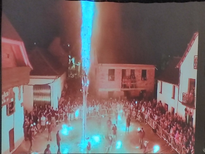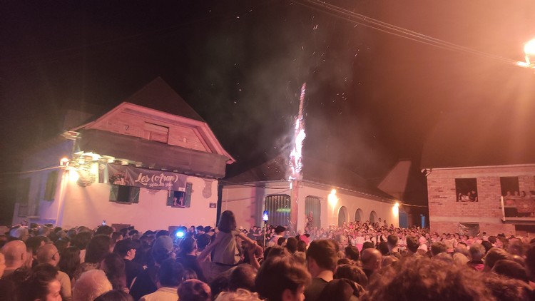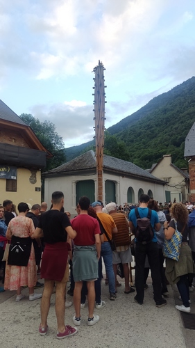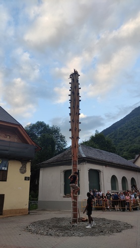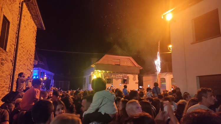 haro, un alto tronco de abeto. El escenario del ritual es la Plaça deth Haro, donde, sobre las 22:00 llega la procesión a ritmo de danzas tradicionales. Tras la bendición y encendido del