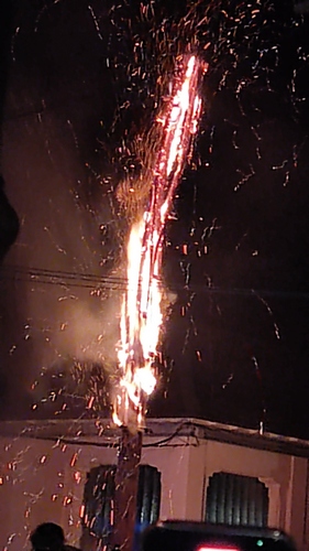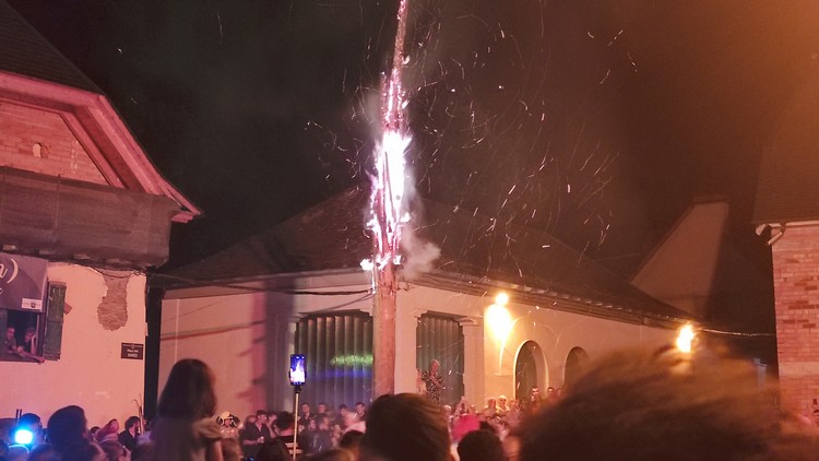haro por parte del sacerdote, se prende fuego a unas antorchas de corteza de cerezo que se hacen girar describiendo círculos y simulando la lucha para purificar y quemar los malos espíritus.