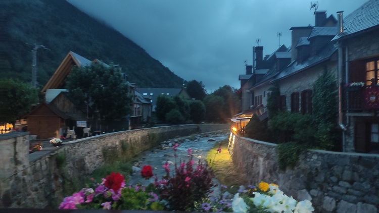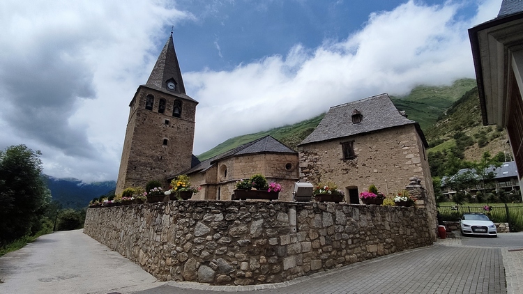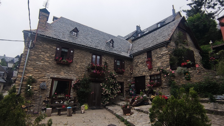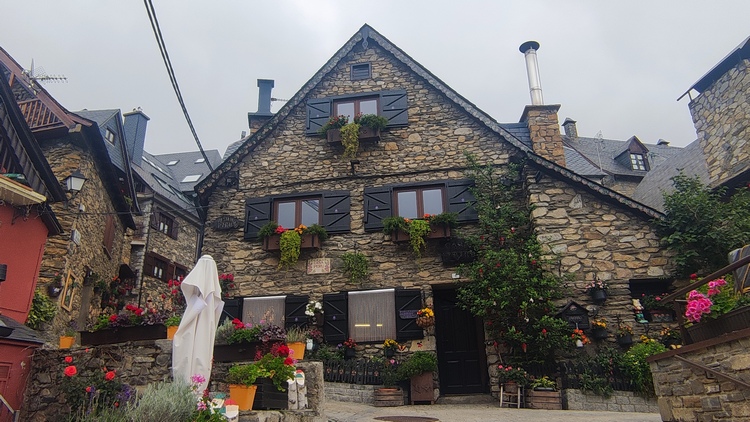 Situado a 1.490m de altura, en una terraza natural, rodeado de prados y densos bosques, Bagergue es el pueblo habitado más alto del Val d’Aran. Al encanto habitual de los pueblos araneses, de calles estrechas, casas de piedra con acabados de madera y marmól, y tejados de pizarra escalonados, hay que añadirle su inclusión en el movimiento de Viles Florides, que promueve la transformación de zonas urbanas en espacios verdes y ajardinados. Puertas y ventanas engalanadas con flores, espacios urbanos ajardinados y coloreadas macetas en cada esquina. El resultado, aunque un poco artificial para mi gusto, es espectacular.