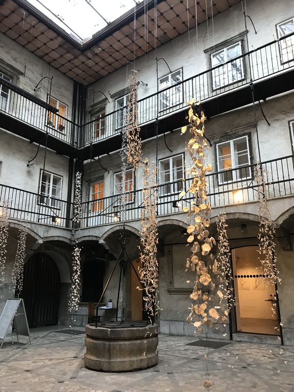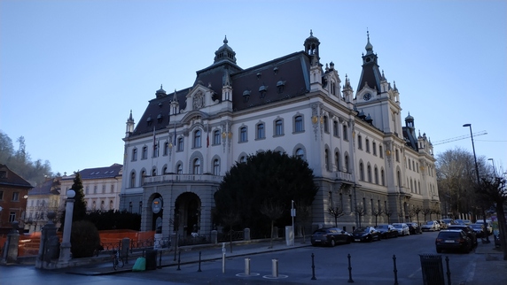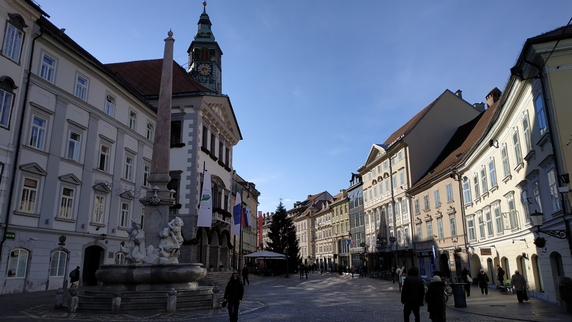 Mestni trg, frente a la fuente barroca de los Tres Ríos, se encuentra el edificio del Ayuntamiento, un edificio del siglo XV con tres bonitos patios interiores donde hay exposiciones gratuitas. Tras el derrumbe de gran parte de los edificios medievales durante el terremoto de 1511, las nuevas construcciones renacentistas y barrocas le dieron el aspecto actual. Llaman la atención los numerosos ventanales de la casa Souvan y la casa Drofenig. En el paso de Mestni trg a
