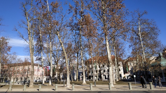 Plaza del Congreso, trazada en 1821, es un enorme espacio abierto donde se encuentra el antiguo Palacio Ducal, el Palacio de la Filarmónica, el convento de las Ursulinas y la Iglesia de la Santa Trinidad. En un extremo, sobre un largo pilar, se alza una reproducción de la estatua del Ciudadano de Emona, una figura romana encontrada aquí en 1836.