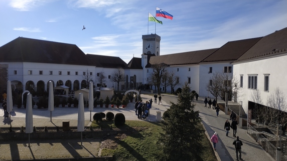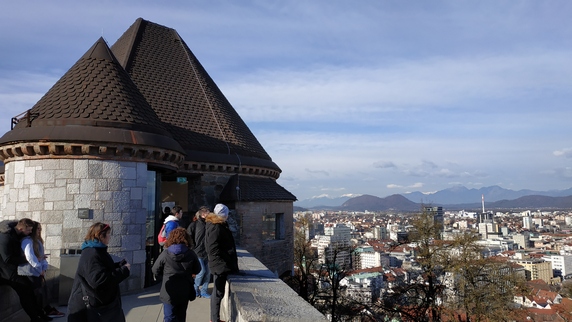 Castillo (4€ ida y vuelta, 2,20€ un trayecto), caben 33 personas y el tarda un minuto en recorrer los 70 mts de desnivel. Se trata de una fortaleza circular con dos puentes levadizos convertida actualmente en un museo, que se puede visitar con una visita guiada, aunque algunas zonas como el patio central, y algunas salas y capillas ocupadas por tiendas y restaurantes son de acceso libre. También son gratis algunas de las mejores vistas ciudad que se obtienen desde sus almenas. Si decides bajar andando, se puede llegar a la ciudad por Gorni trg o por la plaza Vodnik.