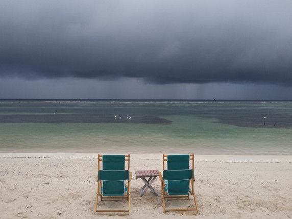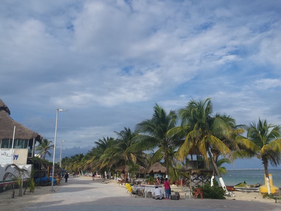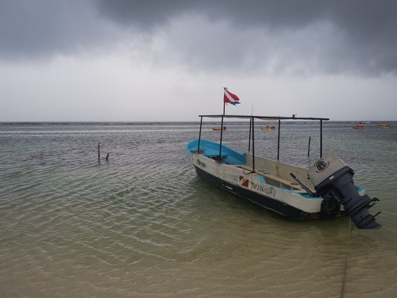 Al intentar ir a Banco Chinchorro nos hemos encontrado con dos problemas: la mala mar, pues estaba entrando un temporal de viento y lluvia que nos acompañaría toda la semana y que provocaba olas de más de metro y medio, demasiado para un trayecto de dos horas en lancha; y el hecho de encontrarnos en temporada baja, pues hacen falta seis buceadores para llenar una lancha, y aunque hay tres clubs de buceo en el malecón y agrupan clientes para optimizar gastos, no fue suficiente.