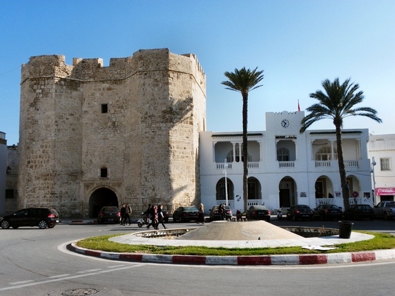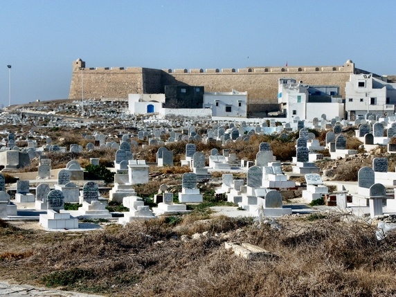 ribat de Borj el Kebir, un fuerte turco del siglo XVI que se alza sobre la medina, y el cementerio musulmán que ocupa casi todo este tramo de costa.