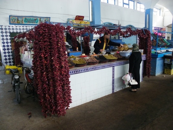 Hotel Medina, 30 TND, en el interior de la medina cerca de Skifa el Kahla, ocupa una casa de dos plantas cuyas habitaciones están organizadas alrededor de un bonito patio interior donde se sirve el desayuno, incluido en el precio: rebanadas, mantequilla, mermelada, galletas, y té o café. Las habitaciones son austeras y sin calefacción, baño y ducha con agua caliente compartidos.