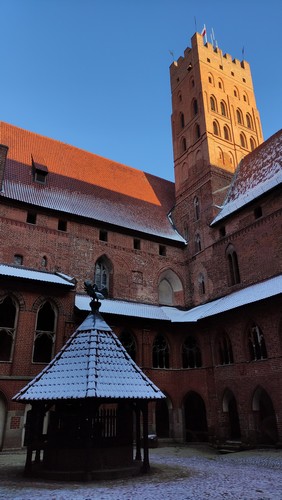 Castillo de Malbork, una fortificación construida durante la época prusiana (año 1274) por la Orden Teutónica, y que es la fortaleza medieval gótica más grande del mundo construida con ladrillo, lo que le valió entrar a formar parte de la lista del