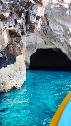 dghajsa, barcas tradicionales de pesca pintadas de vivos colores, semejantes a las góndolas venecianas, que se adentran en las cuevas permitiendo disfrutar de los magníficos juegos de luz y de los corales naranja que cubren parte de las rocas. Precio: 8€, duración: veinte minutos. Muy recomendable.