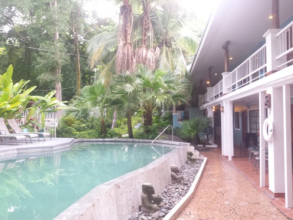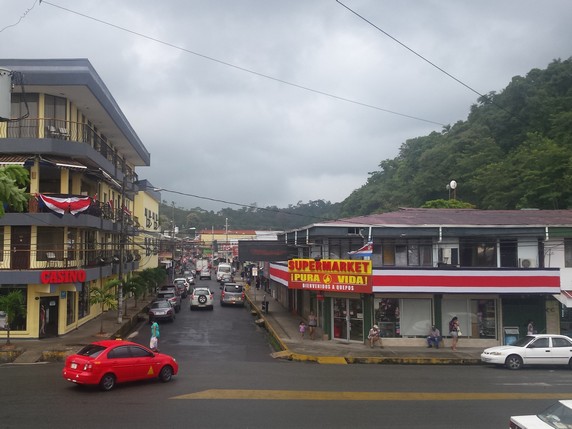 Quepos, a 6 km de la entrada, es el pueblo más cercano al PN Manuel Antonio. Es un lugar pequeño con poco turismo, de apenas una veintena de manzanas. Todo él gira alrededor del mercado de alimentación y abastos: la estación de autobús, algunos supermercados y restaurantes, y el paseo marítimo. A diez minutos del centro se encuentra la Marina Pez Vela, una zona de ocio y restauración frente al puerto deportivo. A pesar de todos estos servicios creo que no es buena idea hospedarse aquí, la zona de aparcamiento junto al parque nacional es muy reducida, así que cuanto más cerca de él esté nuestro alojamiento mejor. Es por ello que los hoteles están mayoritariamente distribuidos a lo largo de la carretera que comunica con el parque, mitad en la playa, mitad en la montaña con vistas a la playa. Hay variedad de precios y calidades, aunque son de los más caros del país.