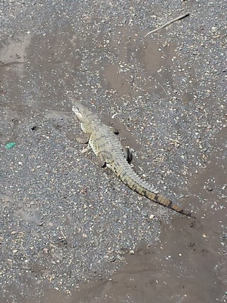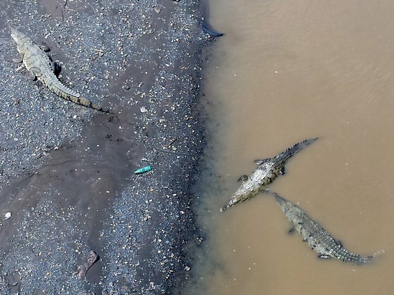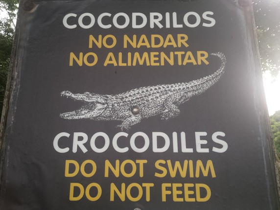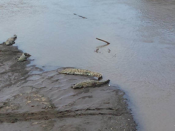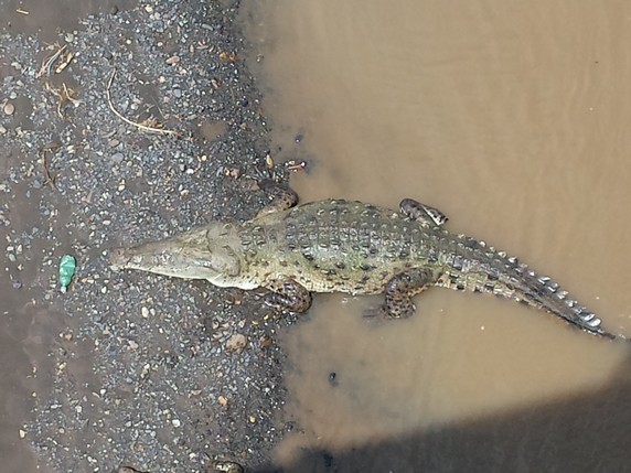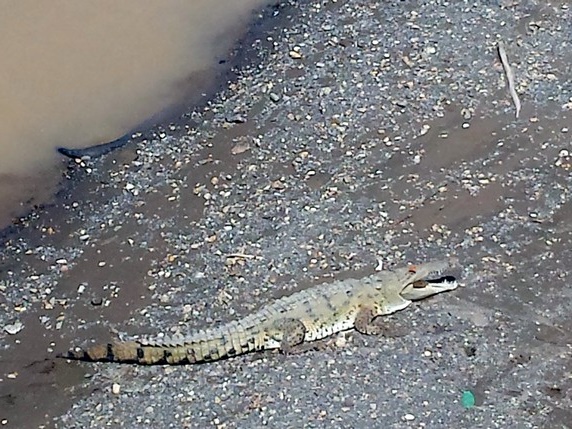 puente sobre el río Tárcoles bajo el cual se agrupan cocodrilos de hasta seis metros. Quince vimos nosotros. Turistas y curiosos se agolpan a ambos lados del puente. El coche se puede dejar en el margen de la carretera donde habrá quien lo vigile por la voluntad (500 colones), también hay tenderetes donde venden fruta fresca,