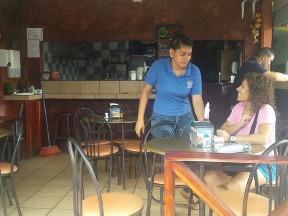 Soda Sánchez, frente al mercado. Buena comida con raciones generosas. Casado con carne en salsa, ceviche de pescado, cerveza Imperial y batido de plátano, 8.750 colones. Paseamos un rato por el paseo marítimo y compramos en un supermercado para poder desayunar en la habitación del hotel. De vuelta tomamos un bus en la estación, junto al mercado central, por 310 colones cada uno.